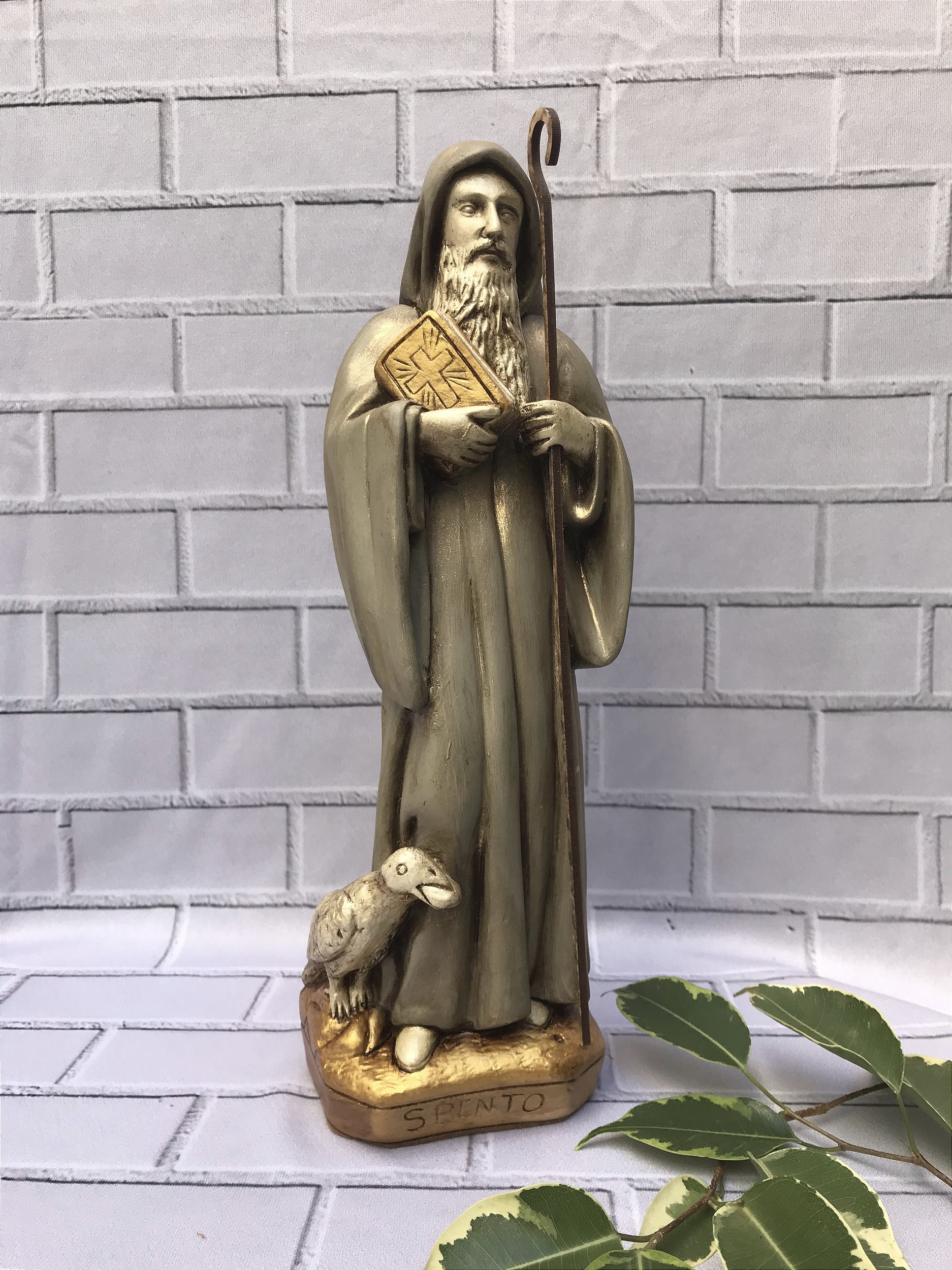 A Imagem de São Bento com Cajado é uma peça decorativa artesanal que traz um toque de espiritualidade e proteção para o seu ambiente. Com 29 cm de altura, esta estátua é esculpida com detalhes impressionantes, retratando São Bento em sua pose tradicional, segurando um cajado e um livro, simbolizando seu papel como guia e protetor. Feita de materiais de alta qualidade, esta estátua apresenta um acabamento em tons sóbrios e dourados, que se destacam em qualquer decoração, seja em casa, em um altar ou em um espaço de meditação.