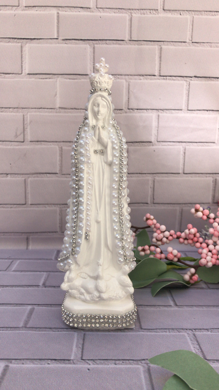 A Imagem Nossa Senhora de Fátima com Pérolas Brancas é uma peça encantadora que traz um toque de fé e beleza para qualquer ambiente. Com um design detalhado, esta imagem é adornada com delicadas pérolas brancas e brilhos que ressaltam sua majestade e pureza. Ideal para altares, casas ou para presentear pessoas especiais, ela é uma representação perfeita da devoção católica.