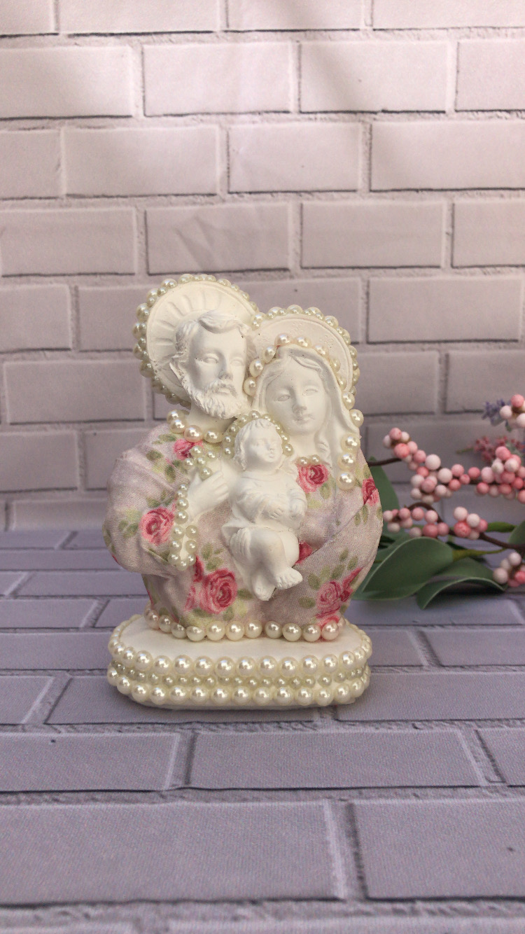 Encante-se com a Imagem Sagrada Família, uma obra de arte que combina a beleza da tradição religiosa com um toque de elegância e sofisticação. Esta peça única, meticulosamente trabalhada, apresenta detalhes em pérolas que embelezam a figura da Sagrada Família, simbolizando pureza e amor. Ideal para adornar altares, prateleiras ou como um presente significativo para aqueles que valorizam a espiritualidade.